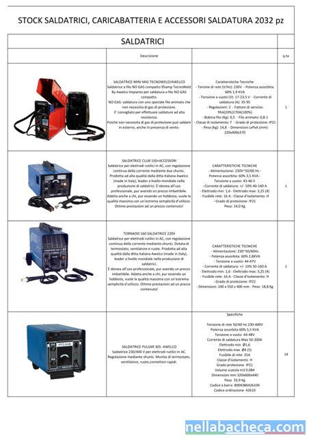 Stock saldatrici, caricabatterie e accessori vari per saldatura per un totale di 2.032 pezzi. Annunci simili nella bacheca |
